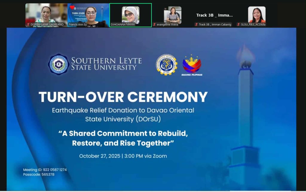 The virtual turnover ceremony, held on October 27, 2025, carried the theme “A Shared Commitment to Rebuild, Restore, and Rise Together.” The donation was raised through the collective contributions of SLSU’s faculty, staff, and students.
